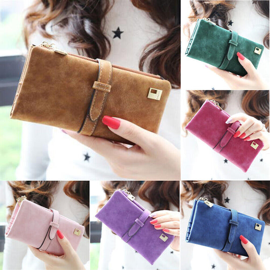 Womens Suede Leather Long Wallet Clutch Card Cash Holder Phone Purse Handbag Bag