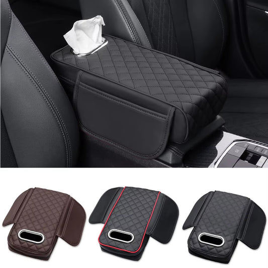 Car Armrest Mat with Tissue Storage Memory Foam Height Pad Universal Auto Center Console Arm Rest Protection Cushion