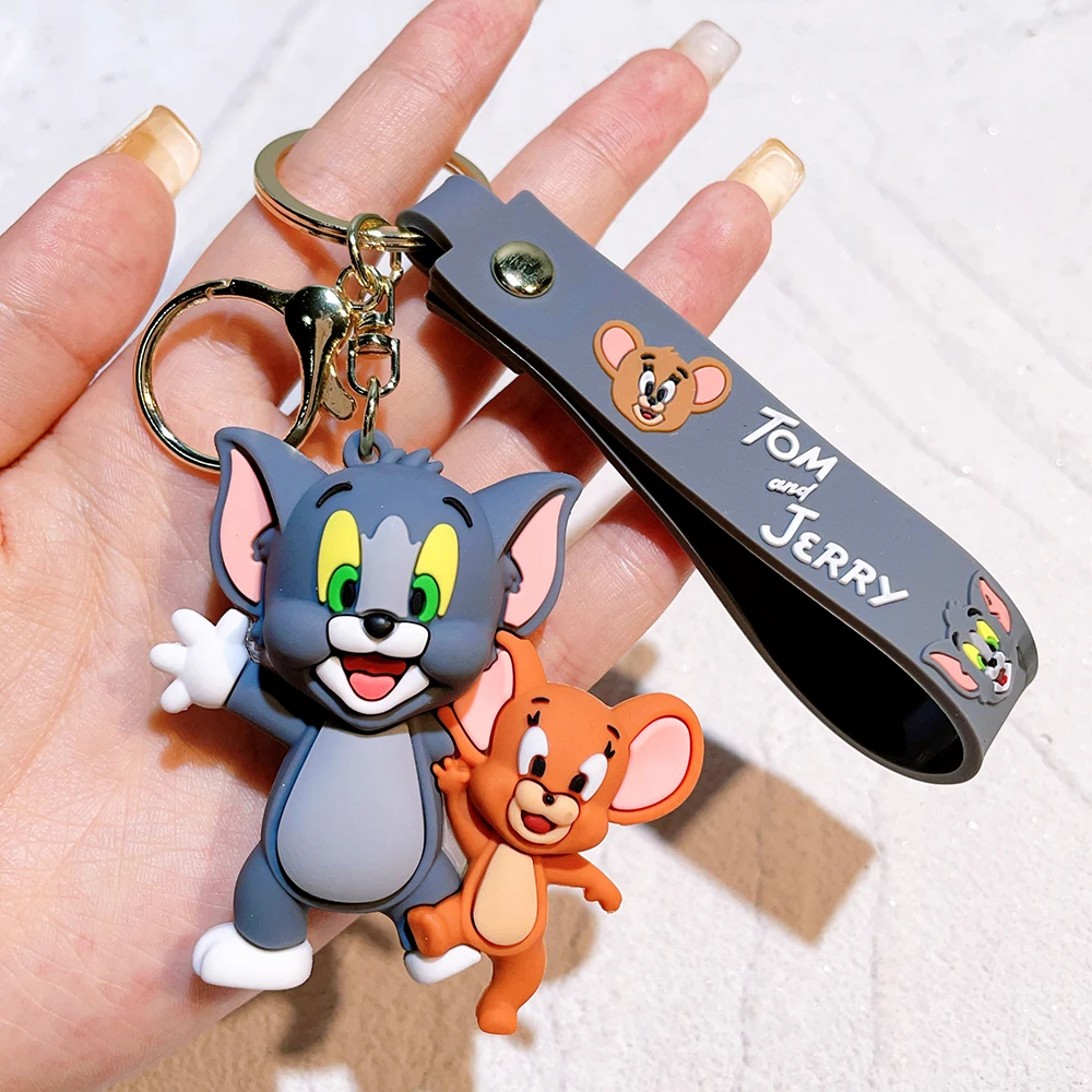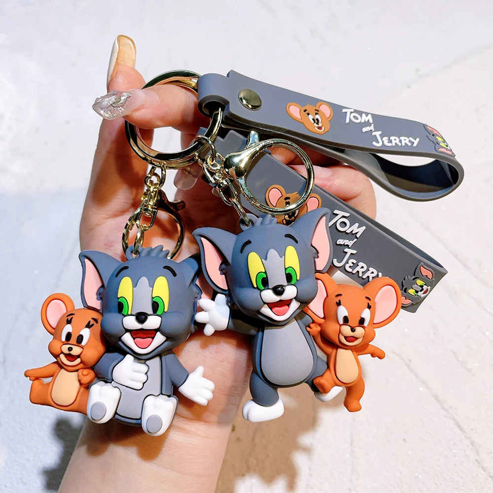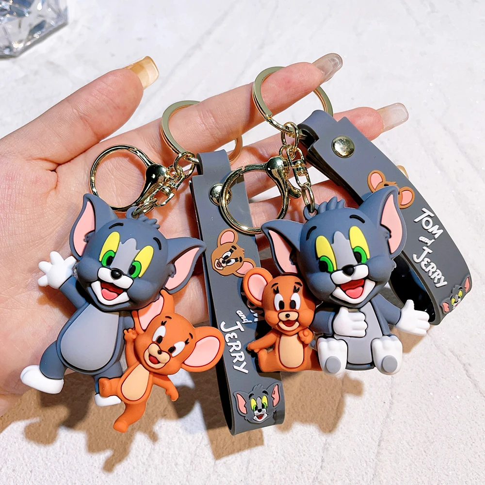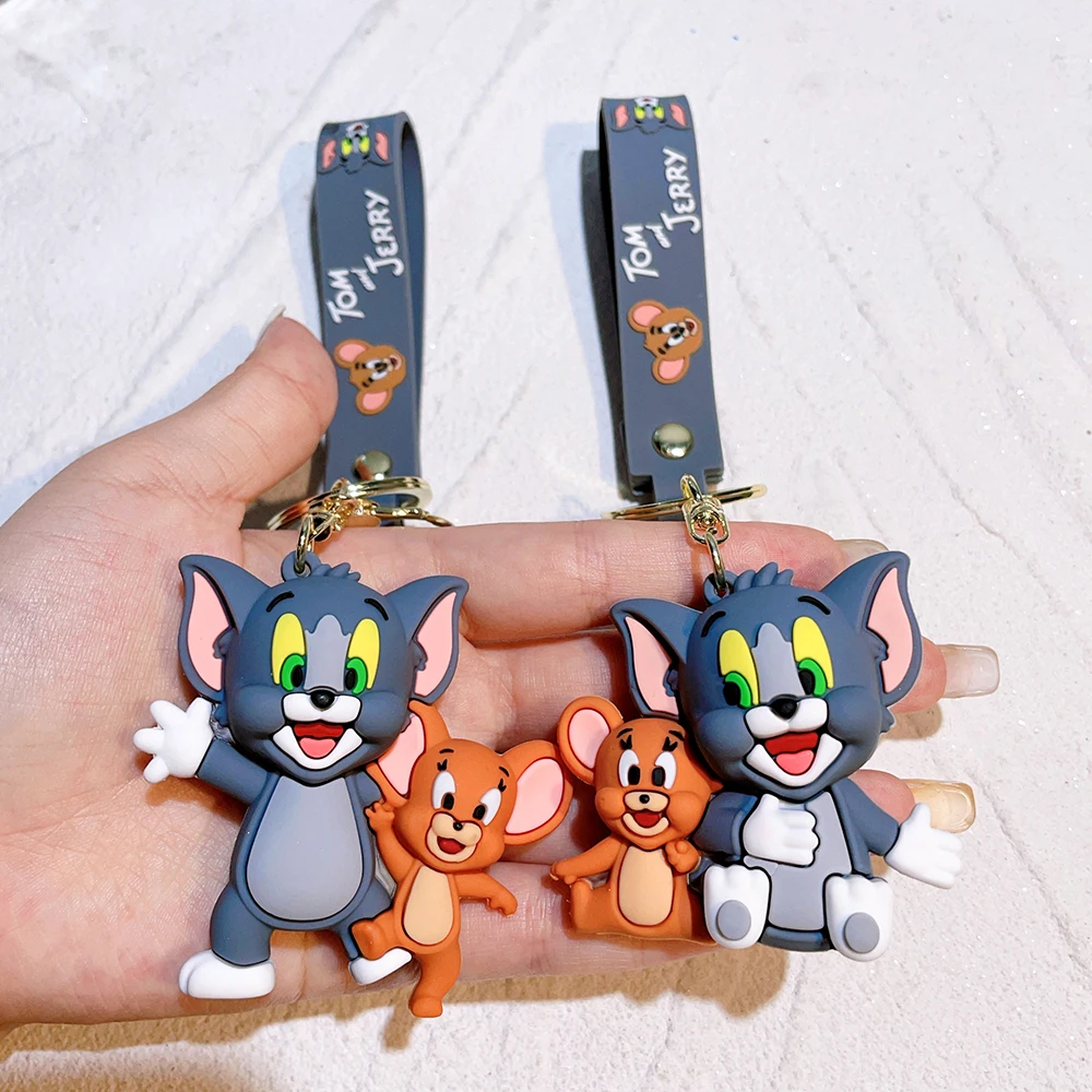 Tom and Jerry Anime Cartoon Ornament Keychain Car Key Bag Pendant Cute Cat and Mouse Action Doll Collectibles Kids Gift Toys